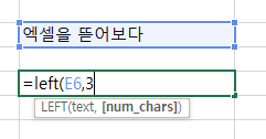 (활용 =left(범위지정,몇개)
