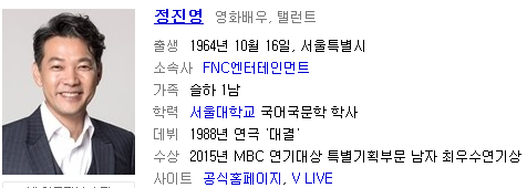 우리가 잘 알고 있는 그 영화배우 정진영님이 맞다.